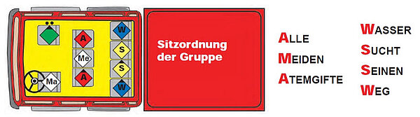 Sinngemäß gilt diese Sitzordnung auch für Löschfahrzeuge ohne Atemschutzgeräte im Mannschaftsraum (kein Umdenken erforderlich).