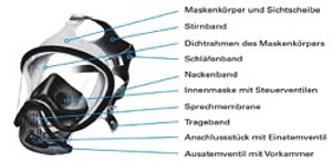 Die Innenmaske mit Steuerventilen hat die Aufgabe, den gerätetechnischen Totraum möglichst klein halten und das Beschlagen der Scheibe zu verhindern.