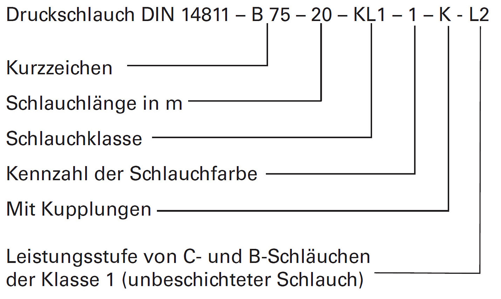 Eine Unterteilung in drei Leistungsstufen L1, L2 und L3 hinsichtlich der Abriebfestigkeit wird lediglich für C- und B-Schläuche der Klasse 1 (unbeschichteter Schlauch) vorgenommen.