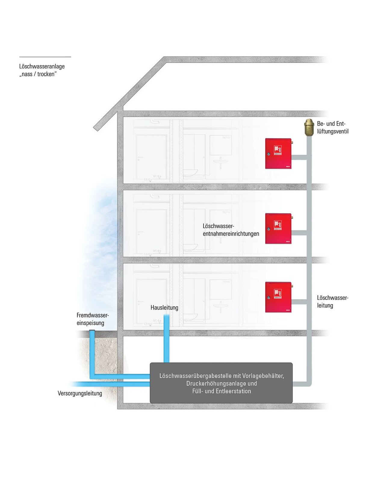 Löschwasseranlage „nass“ und „nass / trocken“