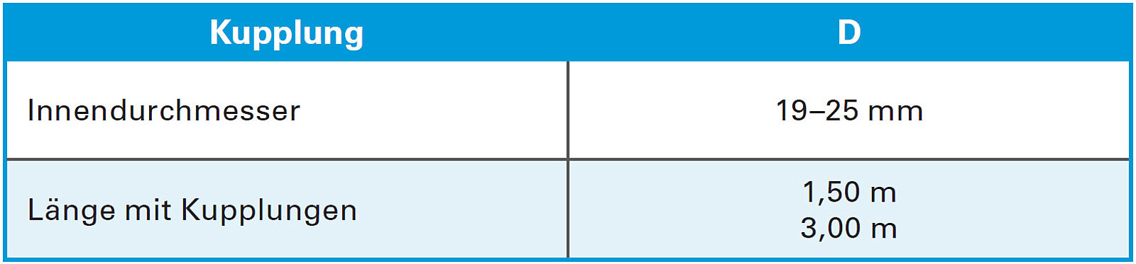 Übersicht von D-Ansaugschläuchen für Löschmittelzusätze nach DIN 14 819