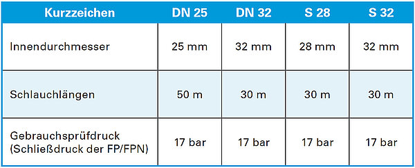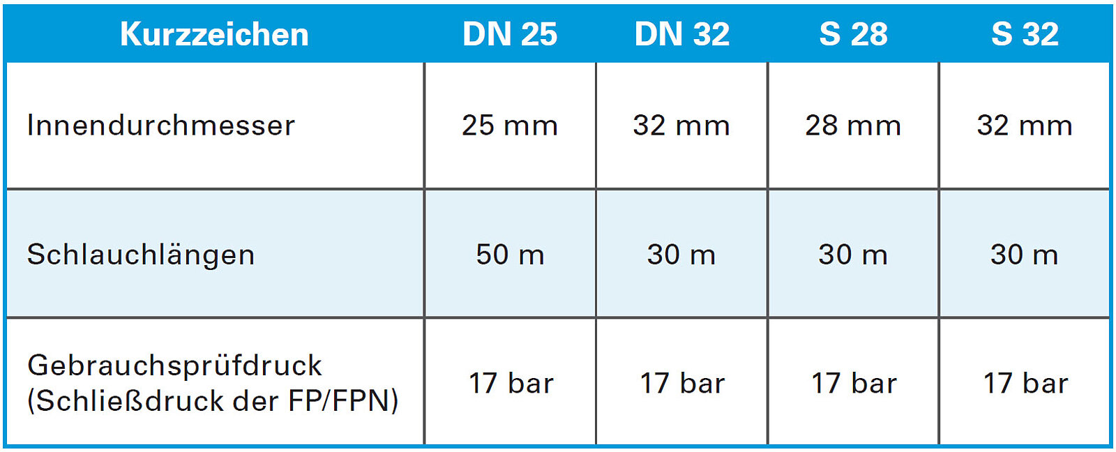 Druckschlauch S nach DIN 14 817-1, D-Ansaugschlauch für Löschmittelzusätze nach DIN 14 819, Saugschläuche, Druckschläuche, Schlauchleitung)