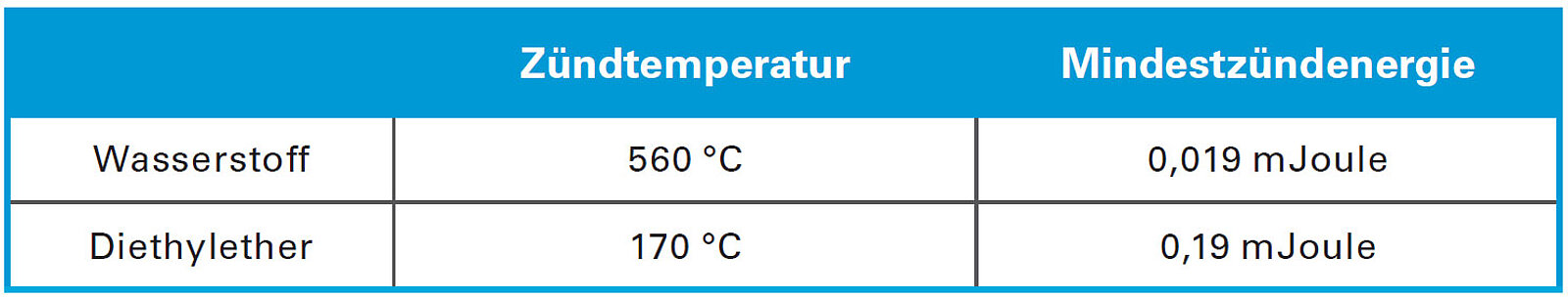 Bei Gasen und Dämpfen hängt die notwendige Zündenergie von der Art des Stoffes ab. Die Mindestzündenergie ist die Energie, die notwendig ist, um ein gasförmiges Brennstoff / Luft-Gemisch, das sich in einem optimalen Mischungsverhältnis befindet, zu zünden. Zündtemperatur und Zündenergie sind voneinander unabhängige Stoffeigenschaften. (siehe Bild)