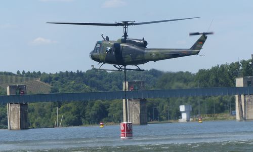 Bell UH 1 bei der Wasseraufnahme am Main bei Würzburg