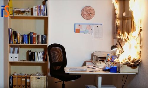 Im Video wird der Verbrennungsvorgang während eines Zimmerbrandes anhand eines Modells (Flash-Over-Box) gezeigt.